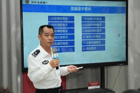 “开讲啦!守住钱袋子”专题宣讲环节拉开活动序幕,福永派出所民警结合辖区实际,围绕新市民、跨境电商行业高发的诈骗类型,进行了深入浅出的案例剖析与防范技巧讲解。民警重点聚焦刷单返利、非法荐股、情感诈骗、屏幕共享等高频骗局,通过真实案例还原诈骗分子的作案流程,拆解“高收益诱惑”“虚假承诺”等常见套路,明确告知群众“天上不会掉馅饼”,提醒大家牢记“不轻信、不透露、不转账”的反诈三原则,遇到可疑情况及时求助,切实守住自己的“钱袋子”。